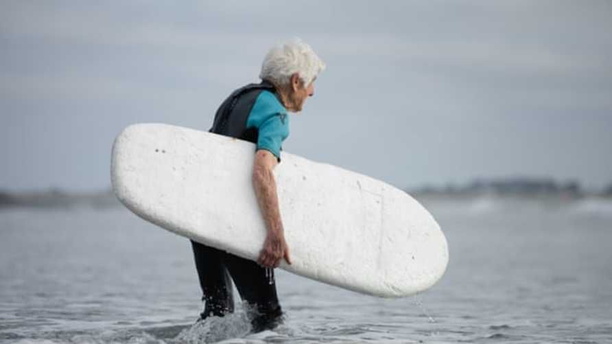 رغم تجاوزها الثانية والتسعين من عمرها، تصر العجوز النيوزيلندية، على ممارسة رياضة ركوب الأمواج، عند أحد شواطئ مدينة سكاربورو بمقاطعة يوركشاير البريطانية، وفقا لما ذكرت صحيفة “الغارديان”.