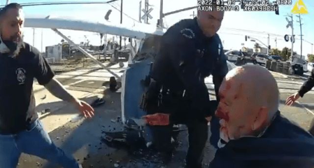 وتظهر لقطات على مواقع التواصل الاجتماعي، ضابطين يرفعان الطيار، الذي كان ينزف دما، من قمرة القيادة. ثم يصرخان: “هيا اذهب! اذهب! اذهب!” أثناء سحبه بعيدا عن الحطام، قبل ثوان من وارتطام قاطرة القطار بذيل الطائرة.