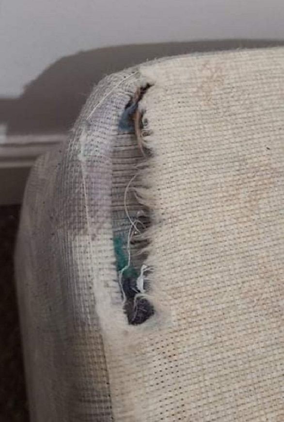 واشتكت الأم أيضاً من أنه طفلها، يفسد أثاث المنزل، إذ أنه عمد مؤخراً إلى قضم جزء من غطاء الأريكة، مما استوجب تغييره.