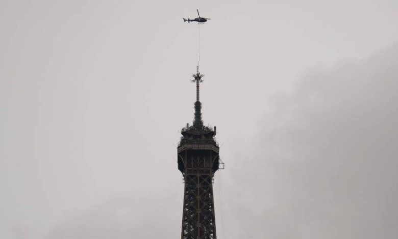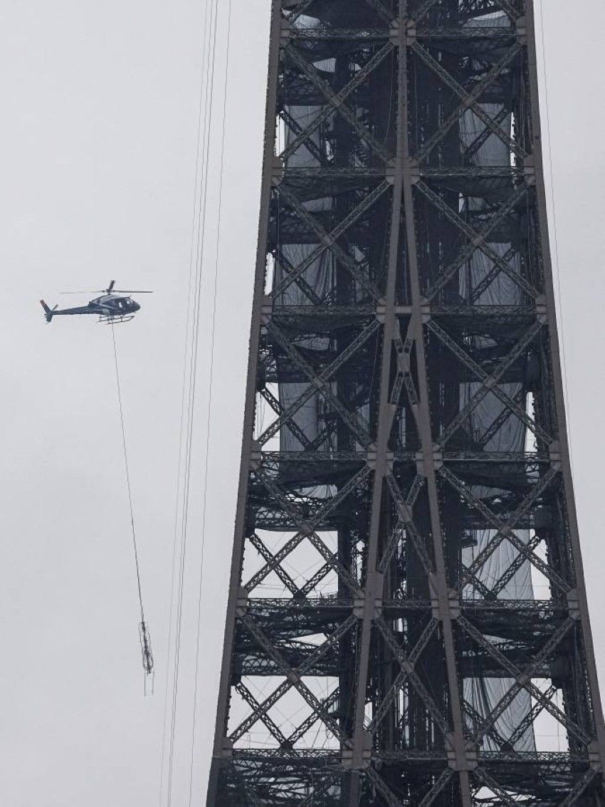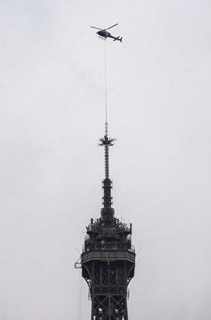 وهذه المرة الأولى التي يتم فيها تركيب معدات جديدة بواسطة طوافة على برج إيفل، وفق الشركة المشغلة للبرج (Sete).
