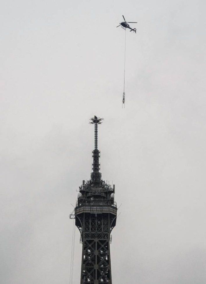 بات علو برج إيفل في باريس 330 متراً بعد تثبيت هوائي للبث الإذاعي بطول ستة أمتار على قمته إثر نقله بواسطة طوافة.