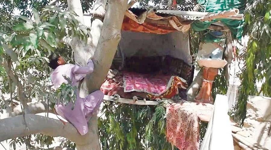 أصبح رجل باكستاني يُعرف باسم طرزان كراتشي بعد أن أمضى السنوات الثماني الأخيرة من حياته يعيش في منزل مؤقت على الشجرة في المدينة.