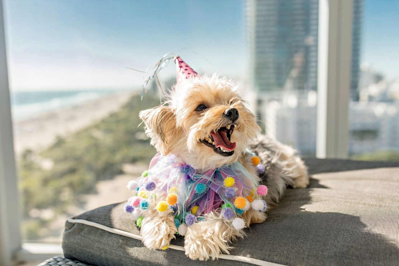 الكلبة “بلانكا” تحتفل بأول عيد ميلاد لها، في أول مقهى للكلاب في دبي، في 30 مايو 2022