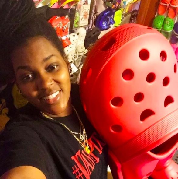 بدأت الأمريكية روشيل، البالغة 38 عاماً، في شراء الأحذية العصرية بسبب حالة طبية تسببت لها في تورم المفاصل، ووجدت أنَّ حذاء كروكس هو الوحيد الذي قدم لها الدعم المناسب.