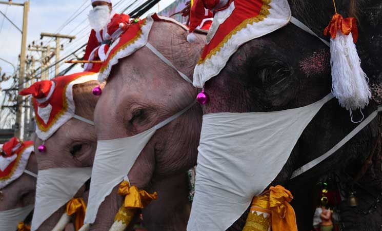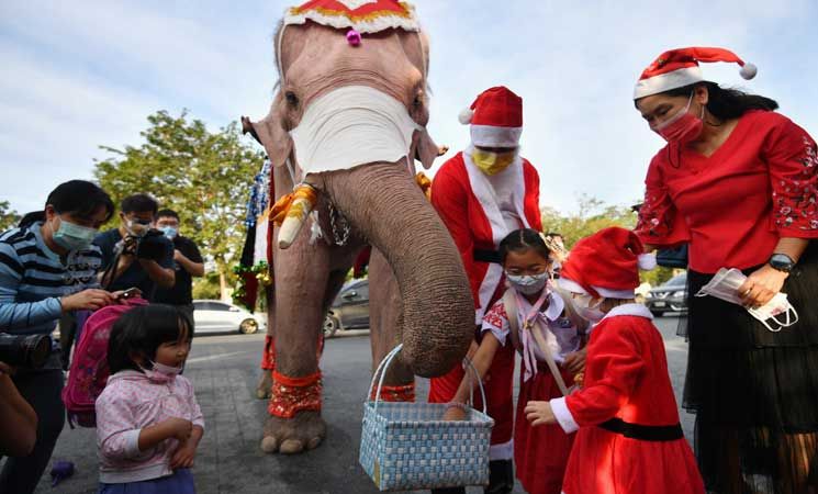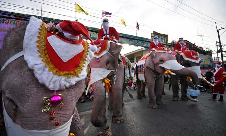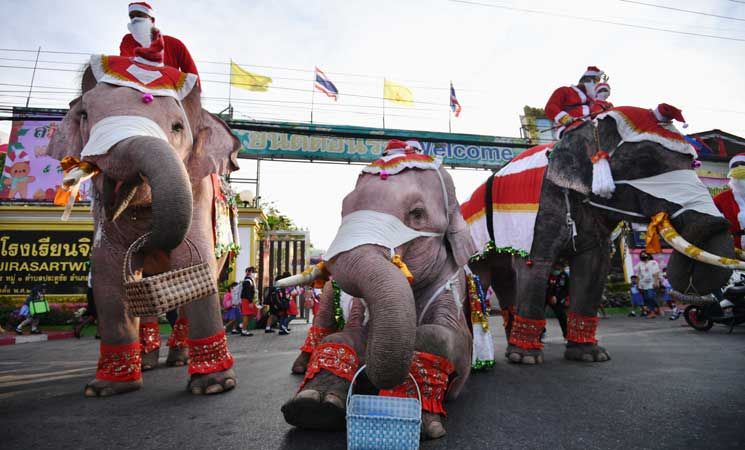ساعد قطيع من الأفيال بابا نويل في توزيع هدايا عيد الميلاد هذا العام في تايلاند.