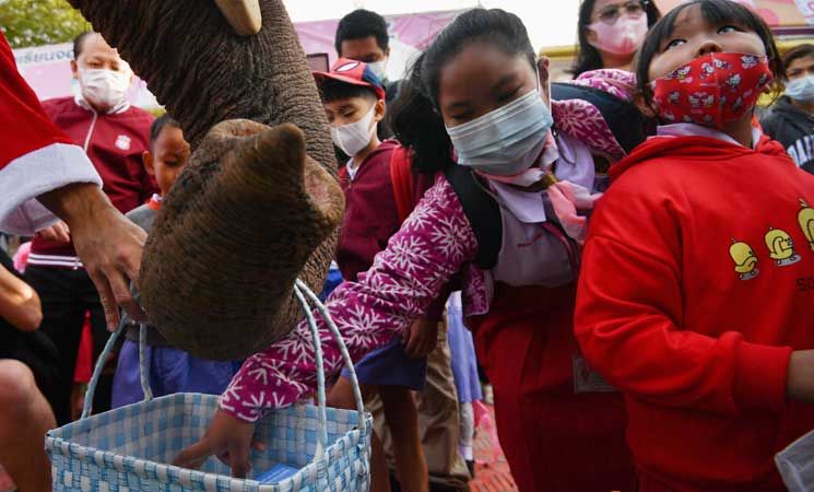 في تايلاند.. بابا نويل يوزع الهدايا من فوق ظهور الأفيال