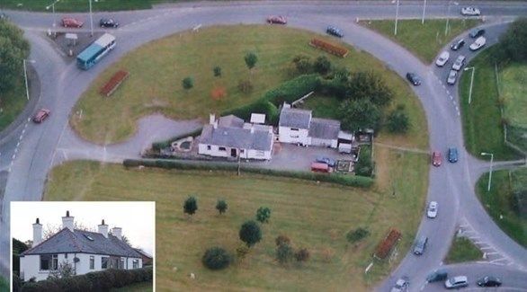 حسب موقع “أوديتي سنترال”، انتقل ديفيد جون وإيريان هواتسون، إلى منزلهما عام 1960، وفي تلك الفترة لم يكن هناك دوار، إلا أنّه في أواخر السبعينيات، قرّرت الحكومة البريطانية العمل على إنشاء ممر دوران حول المنزل، فرفض الزوجان بيع منزلهما، وبقيا فيه ذاته حتى بعد إنشاء الدوار في عام 1980، وهي ذات السنة التي توفي الزوج.