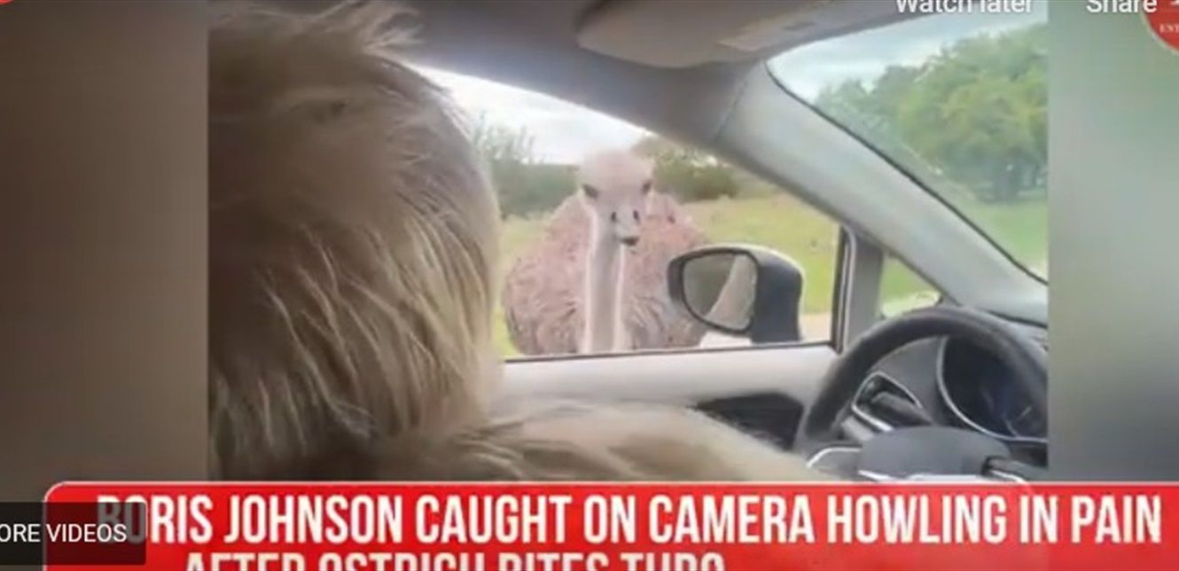 في حادث غريب، اقتربت نعامة أميركية من سيارة كان يقودها رئيس وزراء بريطانيا الأسبق، بوريس جونسون، والى جانبه طفلهWilfred المولود قبل 4 سنوات، وفي المقعد الخلفي زوجته Carrie البالغة 37 عاما، وبيدها هاتفها تصور بعدسته ما تراه من نافذة السيارة أثناء تجوال العائلة في حديقة برية بتكساس.