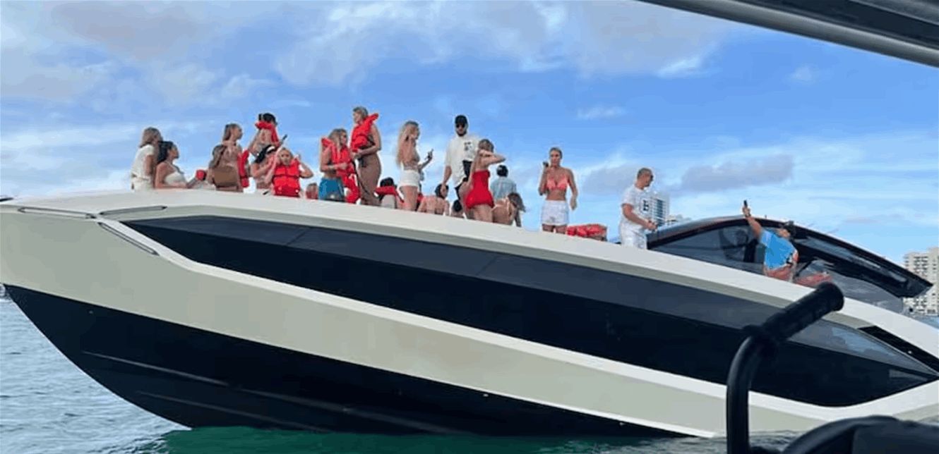 تعرّض يخت فاخر بطول 63 قدمًا، كان يقلّ 32 شخصًا معظمهم من مؤثري وسائل التواصل الاجتماعي، للغرق جزئيًا قبالة سواحل ميامي بالقرب من جزيرة مونومنت في خليج بيسكاين، السبت الماضي.