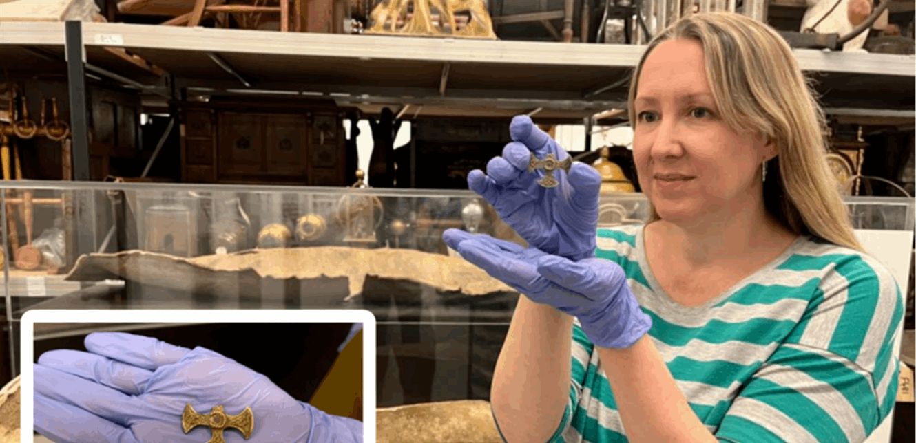 تم العثور على القطعة المصنوعة من الفضة المغطاة بطبقة ذهبية رقيقة في أحد الحقول المحلية العام الماضي بواسطة شخص يستخدم جهاز كشف المعادن. ورغم فقدان جزء من الصليب والحجر الكريم الذي كان يزين وسطه، ما زالت القطعة تحتفظ بجمالها ودقة صنعها، ما يدل على أهميتها الرمزية.