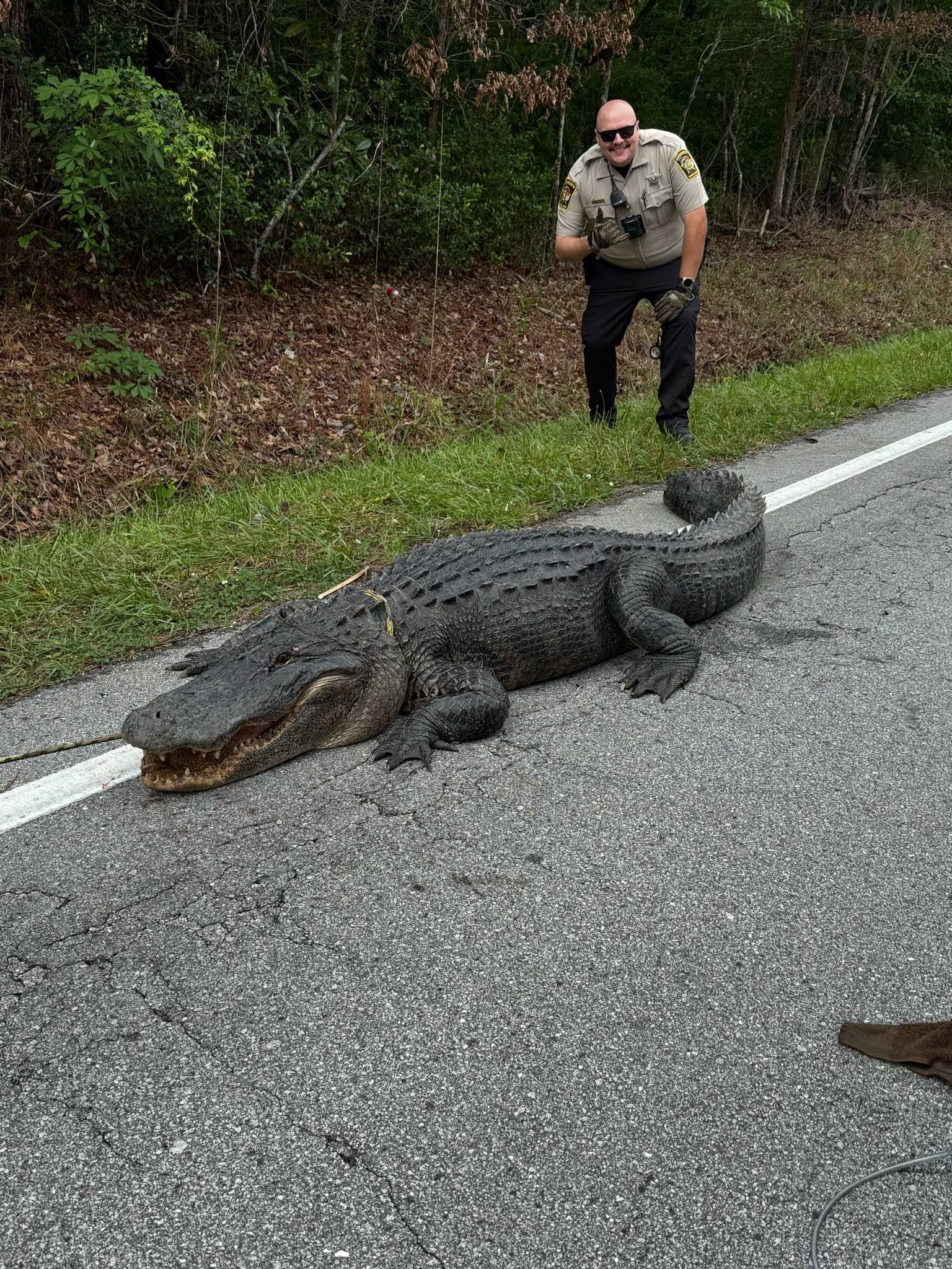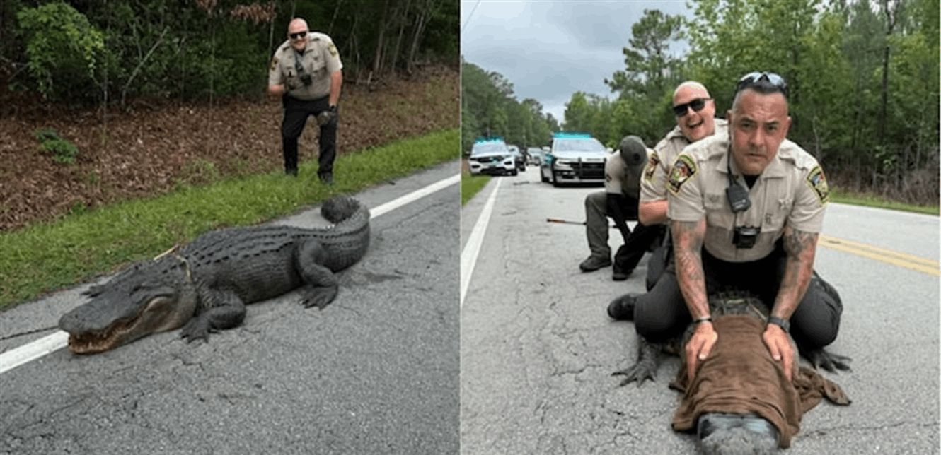 شهدت مقاطعة أونسلو في ولاية كارولاينا الشمالية حادثًا طريفًا من نوع خاص، حين فوجئ السائقون بتمساح ضخم يزن نحو 400 رطل (حوالي 180 كلغ) ويبلغ طوله 3 أمتار، وهو يسترخي بهدوء على جانب طريق أولد 30، غير آبه بحركة السير ولا بالقوانين!
