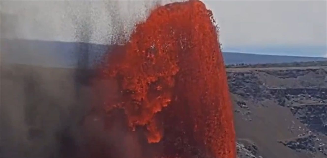 في أحدث دفعة للثوران المستمر منذ 6 أشهر تقريبا، بدأ بركان كيلاويا في جزيرة هاواي الكبيرة، وهو أحد أكثر البراكين نشاطا في العالم، أمس الأربعاء بقذف الحمم من الفوهة الشمالية.