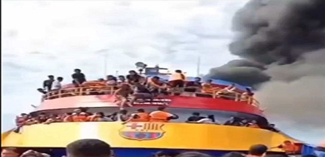 اندلع حريق كبير في سفينة "برشلونة 5" الاندونيسيّة، وكان على متنها 280 راكباً.