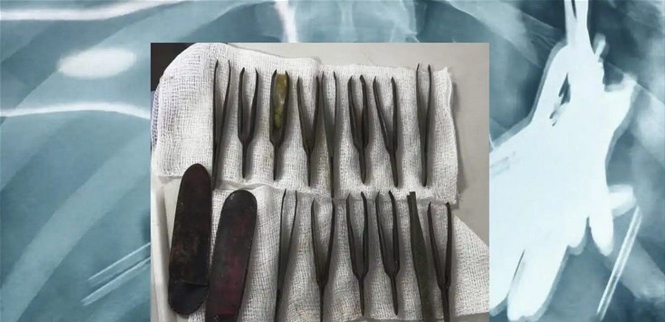 وقال نائب مدير المستشفى، الدكتور مصطفى عبد الرحمن، إن المريض راجع المستشفى وهو يشكو من آلام حادة في المعدة، وبعد إجراء الفحوصات الشعاعية، تبيّن وجود أجسام غريبة في معدته، بينها أدوات حادة ومعدنية.