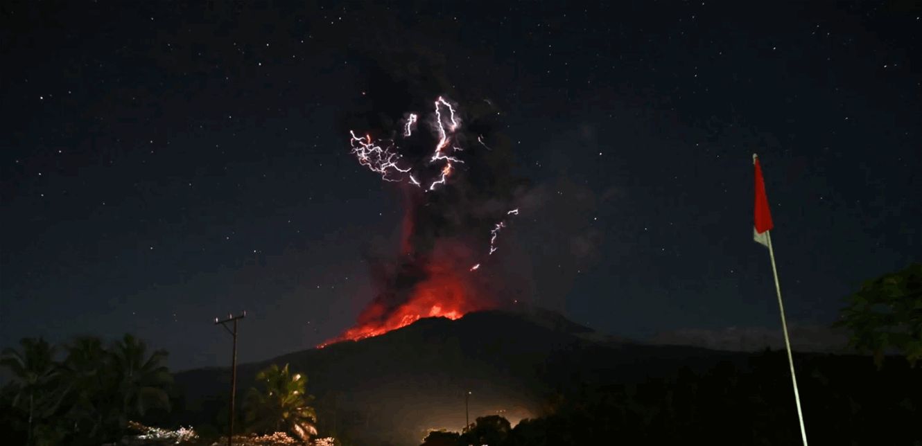وقبيل ذلك بساعات، سجل ثوران يوم الجمعة عمودًا بلغ 6.2 أميال، وأضاءت الحمم المتوهجة والصواعق سماء المنطقة. ورصدت وكالة الجيولوجيا الإندونيسية تدفق سحب ساخنة من الغاز والصخور والحمم امتدت حتى ثلاثة أميال على سفوح الجبل، فيما أظهرت طائرات مسيّرة حركة عميقة للصهارة تسببت بهزات التقطتها أجهزة الرصد.