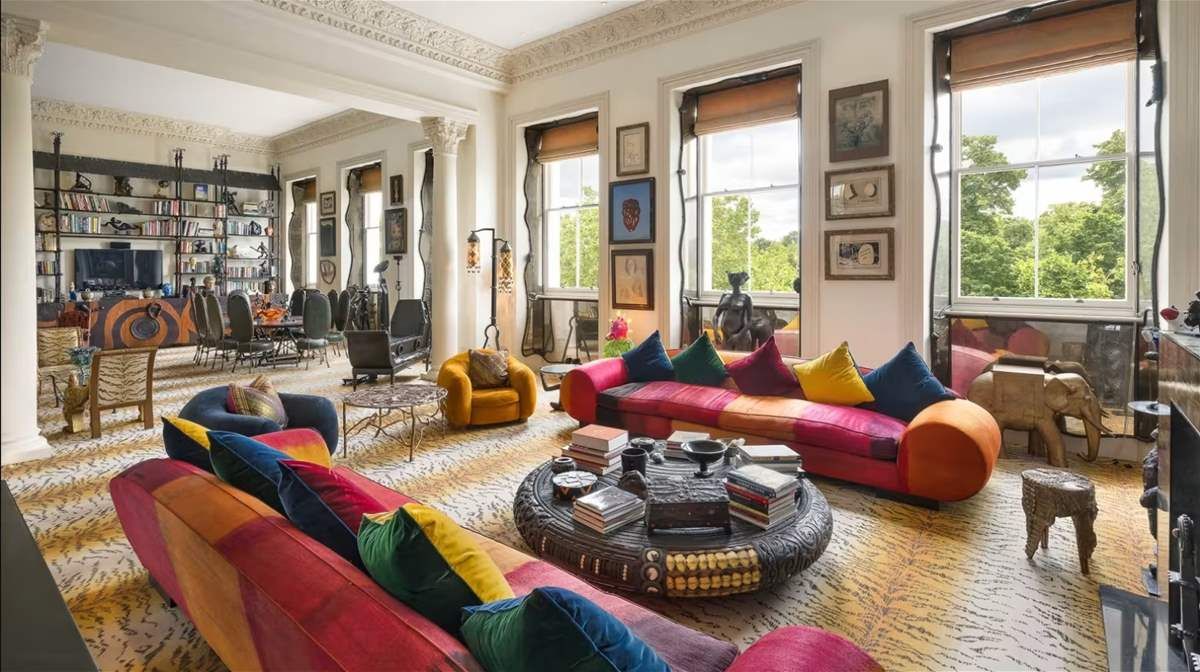 تزين شقتها القريبة من هايد بارك في لندن لوحات وأثاثاً مصمماً خصيصاً لها، وكان منزلها ملتقى للفنانين والشخصيات الثقافية. ومن بين أبرز الأعمال في المزاد لوحة "La Statue volante" لماغريت بقيمة تقديرية بين 12 و16 مليون دولار، وأعمال لوارهول مستوحاة من إدفارد مونش، ورسوم لدالي، وسرير نحاسي منحوت من تصميم كلود لالان.