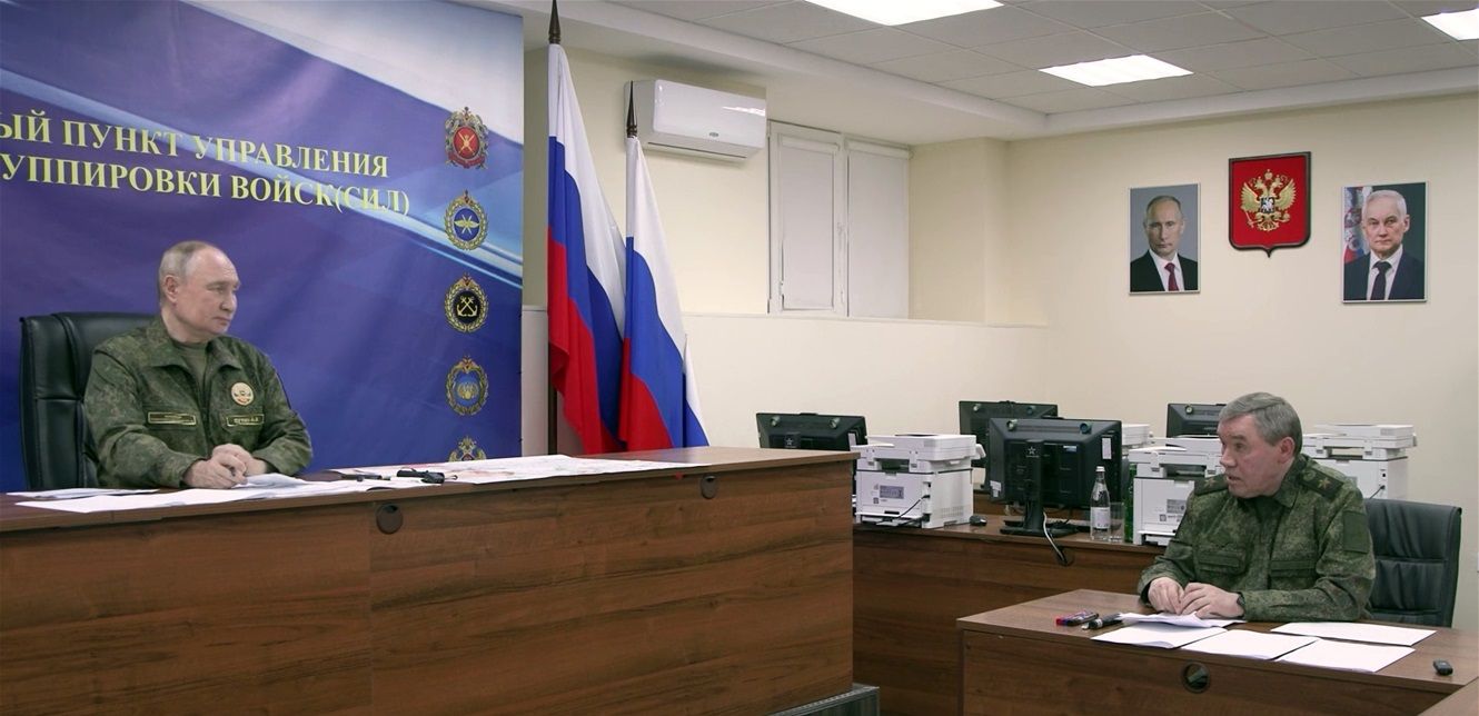 وعقد بوتين اجتماعا مع رئيس الأركان العامة فاليري غيراسيموف وقادة القوات المشاركة في العملية العسكرية الخاصة في أوكرانيا.