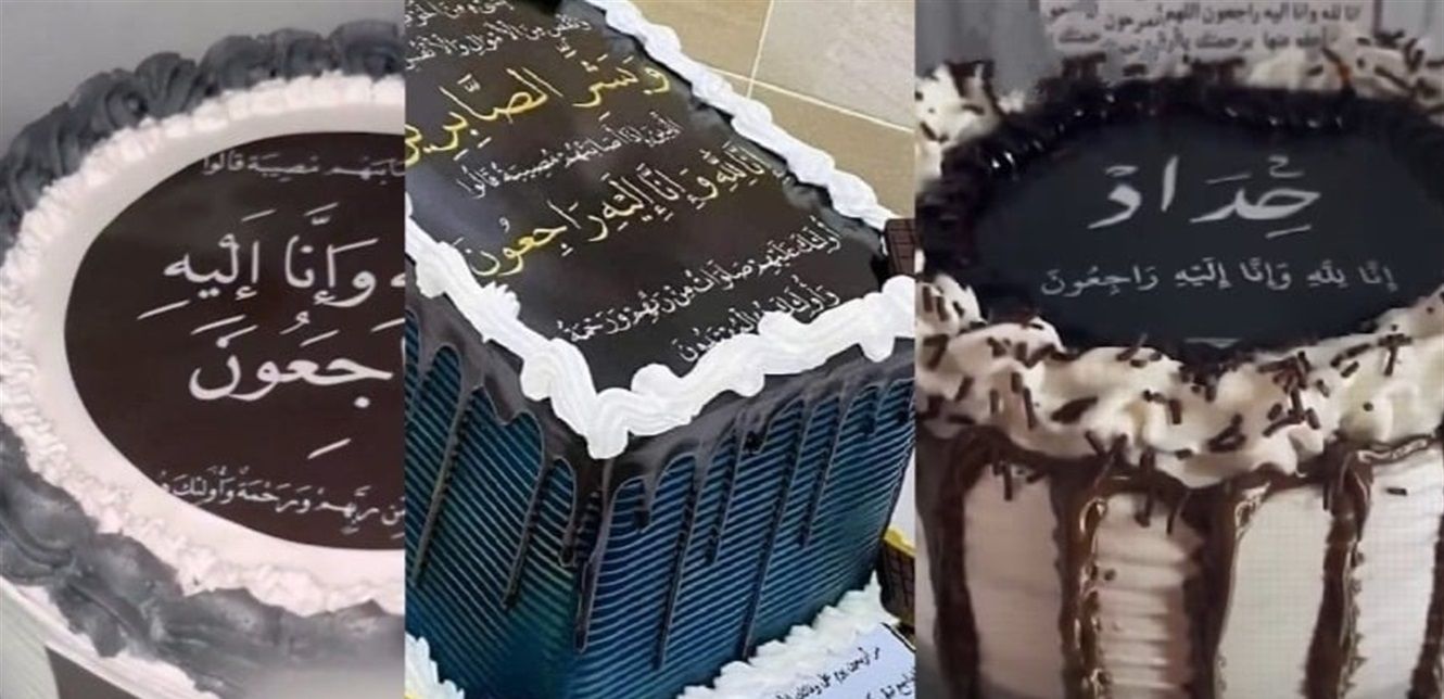 وتقوم هذه الظاهرة الغريبة على تصميم قوالب من الحلوى مزينة بطريقة لافتة، لا تحمل رسائل احتفالية، بل نصوصاً مخصصة للرثاء، حيث تُطبع عليها آيات قرآنية كريمة أو كلمات رثائية حزينة وصور للأشخاص المتوفين.