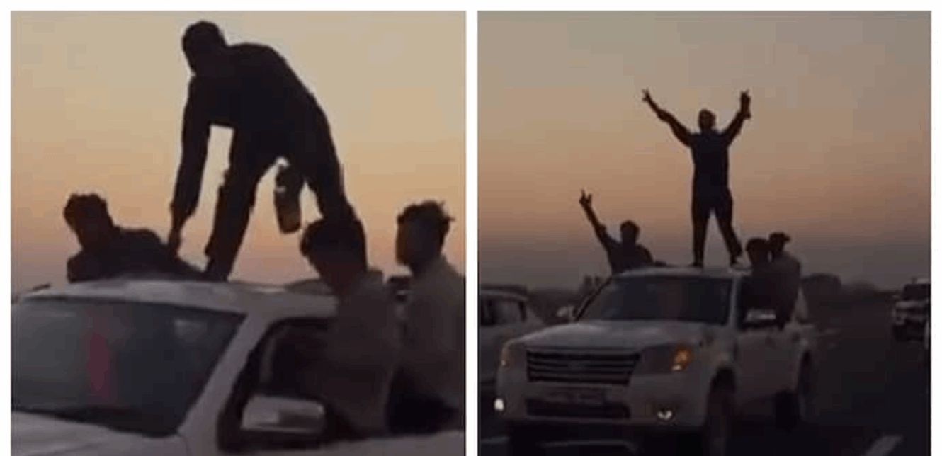 وخلف سيارة العريس، ظهرت سيارة بيضاء يستقلها عدد من الشبان، حيث راح بعضهم يميل من النوافذ ويتدلّى خارج السيارة المتحركة، قبل أن يُقدم أحدهم على اعتلاء سطح السيارة وهي في حالة سير، في مشهد وُصف بالمتهور، كان من الممكن أن يتسبب بحادث مروّع على طريق مزدحم. وقد عبّر كثير من مستخدمي منصات التواصل عن استنكارهم الشديد لما وصفوه بـ"بحث أعمى عن الإثارة" على حساب حياة الآخرين.