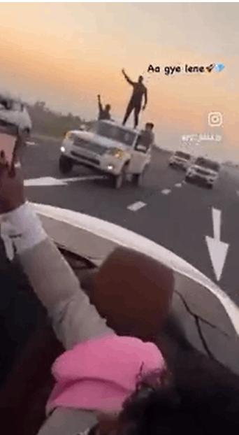 انتشر على مواقع التواصل الاجتماعي مقطع فيديو يُظهر سيارة تقوم بحركات استعراضية خطيرة على طريق غانغا السريع في هابور، بالهند، خلال موكب زفاف، ما أثار موجة استياء وقلق واسعَين بسبب الاستهتار الفاضح بقواعد السلامة المرورية. ويُبيّن الفيديو موكباً من السيارات تتقدمه سيارة العريس، الذي ظهر واقفاً من فتحة السقف بينما تسير السيارة بسرعة على الطريق السريع.