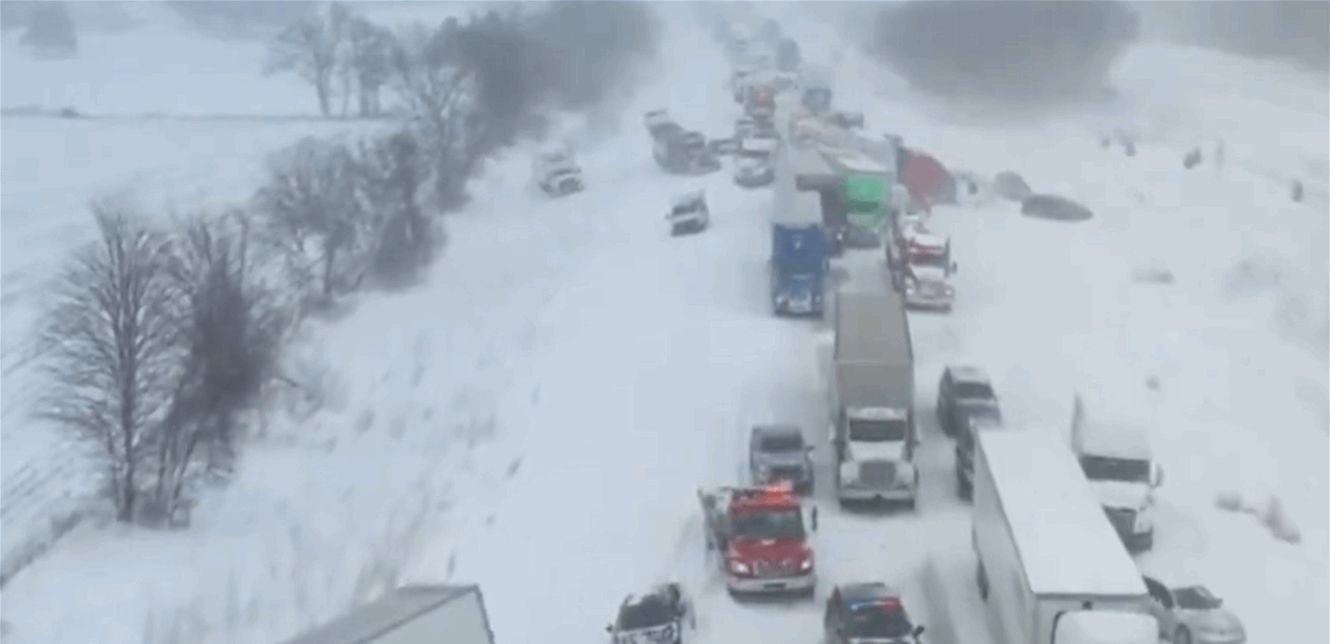 بسبب الثلوج.. تصادم بين أكثر من 100 سيارة وشاحنة (فيديو)
