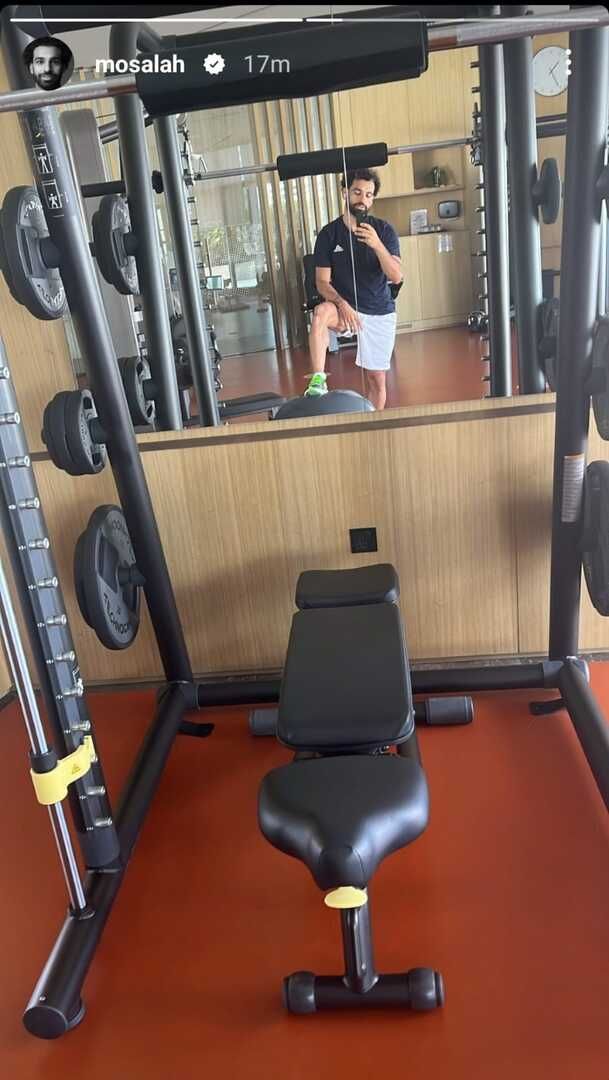ونشر صلاح، صوراً عبر “إنستغرام”، خلال قيامه بالتدريبات الصباحية، سواء الجري أو أداء بعض التدريبات في الصالة الرياضية “جيم”.