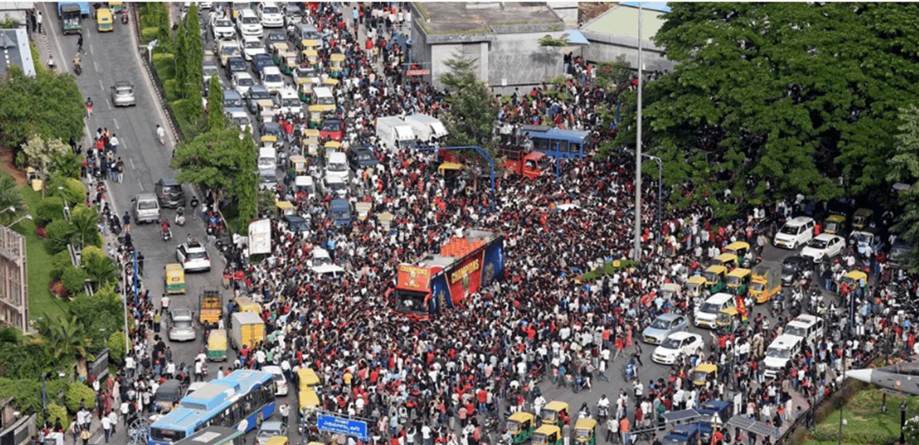 وكان آلاف المشجعين قد احتشدوا في محيط الملعب للاحتفال بانتصار فريقهم، الذي حقق فوزًا ثمينًا على "بنجاب كينغز" في المباراة النهائية مساء الثلاثاء. ورافقت الحشود حافلة الفريق من الشوارع وصولاً إلى الملعب، وسط هتافات وحمل للأعلام الحمراء المميزة للنادي.