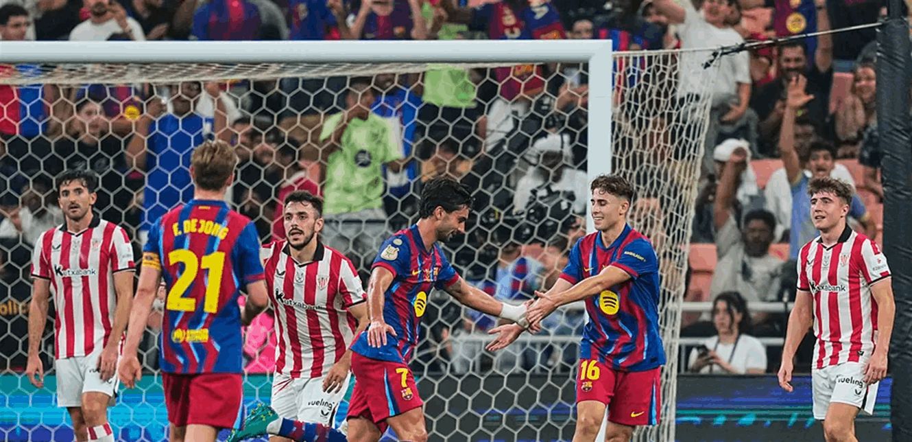 كانت جدة، حيث تُوّج برشلونة بكأس السوبر قبل اثني عشر شهرًا على حساب ريال مدريد، مسرحًا جديدًا لنسخة كتالونية قوية أمام أتلتيك بلباو. الفريق بدا متماسكًا وحاسمًا، وأنهى نصف النهائي عمليًا خلال نصف ساعة، قبل أن يوسّع الفارق لاحقًا.
