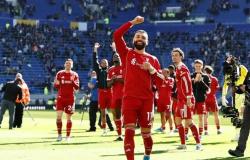وكان لاعبو ليفربول قد دفعوا الثنائي محمد صلاح وآندي روبرتسون إلى مقدمة الملعب لتحية الجماهير، بعد الفوز على إيفرتون 2-1، في مباراة وُصفت بأنها الأخيرة لهما في الديربي قبل مغادرة النادي نهاية الموسم.