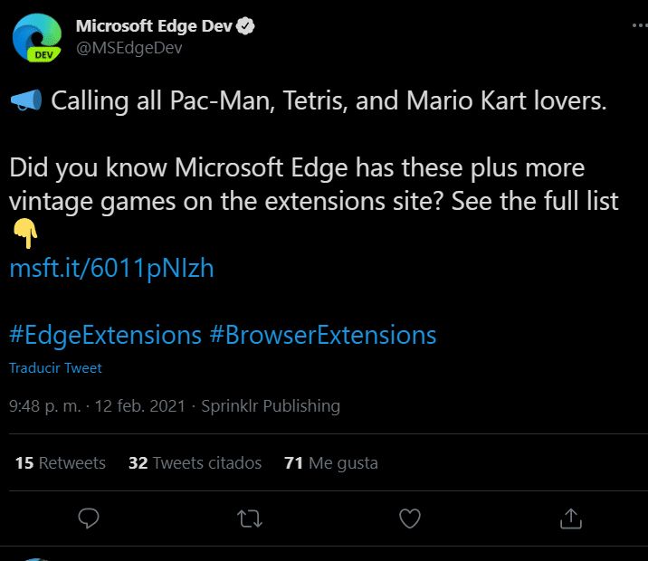 ويبدو أن مايكروسوفت نفسها تروج لإضافات متصفح Microsoft Edge فيما يبدو أنه تغريدة محذوفة الآن من حساب MSEdgeDev.