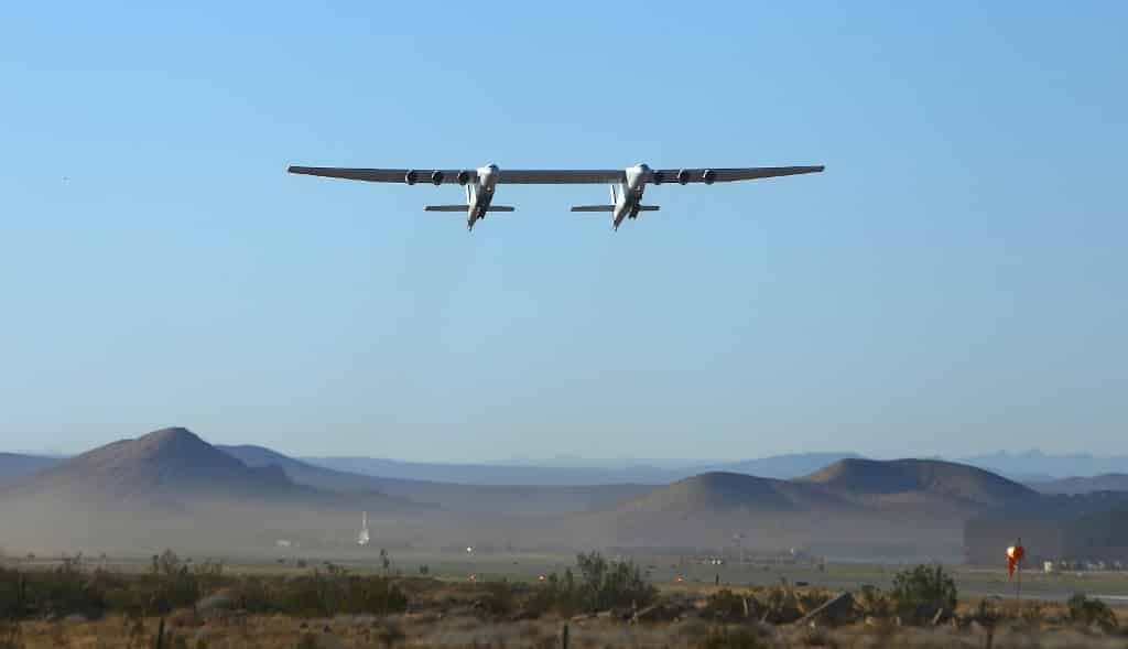 وحلقت طائرة Roc ذات الجسم المزدوج التي يبلغ طول جناحيها 385 قدمًا – أي ضعف عرض طائرة بوينج 747 – لمدة ثلاث ساعات و 14 دقيقة فوق صحراء موهافي على ارتفاع 14000 قدم.