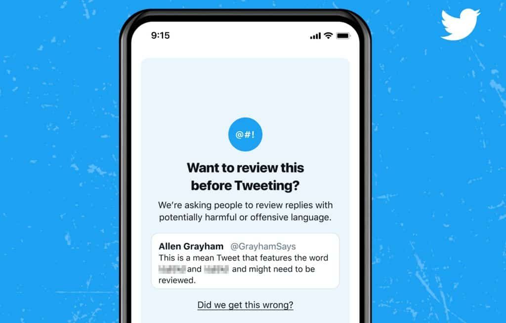 حدثت شركة تويتر سياساتها التي تطالب المستخدمين بالتوقف مؤقتًا وإعادة النظر عندما يكونون على وشك التغريد برد يحتمل أن يكون ضارًا أو مسيئًا قبل النقر على زر الإرسال.