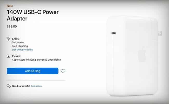 ويباع الشاحن الجديد بقوة 140 واط بشكل منفصل مقابل 99 دولار. ولكن دون كابل USB-C-to-MagSafe الذي يكلف 49 دولار.