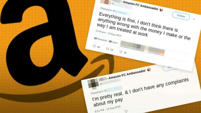 تخلت شركة أمازون عن حملتها المتمثلة في دفع رواتب للموظفين لمشاركة رسائل إيجابية على وسائل التواصل الاجتماعي، وأزالت الرسائل عبر الإنترنت التي كانت تهدف إلى تحسين صورة عملاقة التكنولوجيا بالنسبة للعمال المحتملين الذين تحتاجهم لتحقيق النمو المستمر.