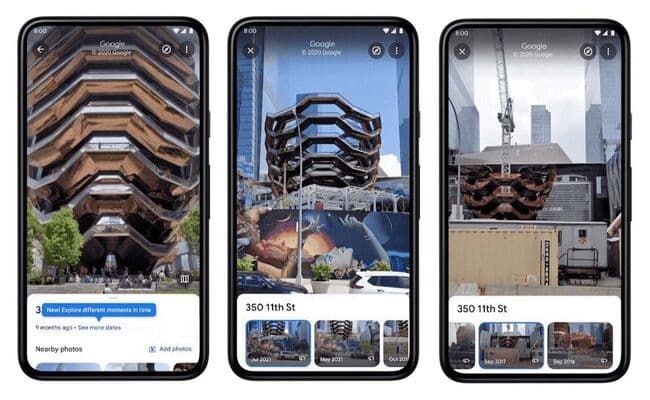 وتعد الترقية الأولى بمثابة ميزة جديدة قادمة إلى تطبيقات iOS وأندرويد، بحيث تعرض صور التجوّل الافتراضي التاريخية عبر هاتفك. بينما الترقية الثانية هي كاميرا جديدة أكثر قابلية للحمل وتأمل الشركة أن تسهل عليها التقاط صور التجوّل الافتراضي في المستقبل.