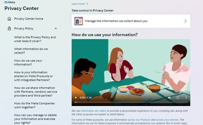 ونشرت الشركة مقالاً يوضح بالتفصيل سبب إعادة كتابة شروط الخدمة وسياسة الخصوصية. ووفقًا للشركة، أصبح من السهل الآن على المستخدمين الفهم والتفكير في المنتجات والخدمات التي تقدمها ميتا. ويتمتع مركز الخصوصية الآن بواجهة أكثر سهولة في الاستخدام.