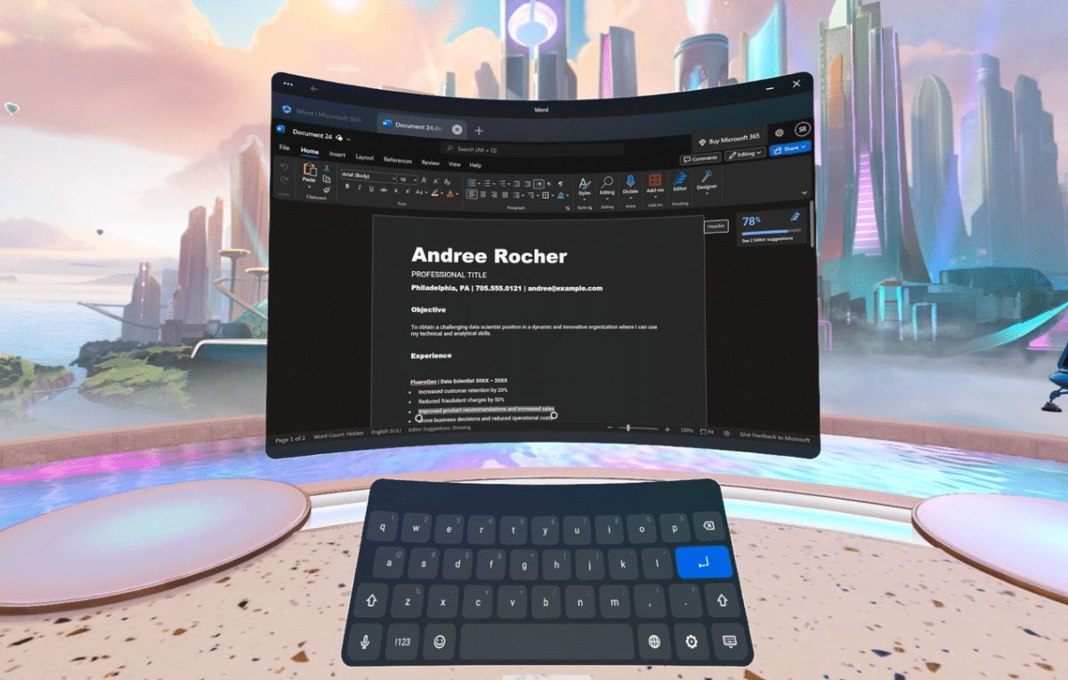 جلبت مايكروسوفت تطبيقات أوفيس إلى نظارة ميتا للواقع الافتراضي، وتتوفر تطبيقات وورد وإكسل وباور بوينت للتنزيل مجانًا عبر نظارة الرأس كويست Quest.