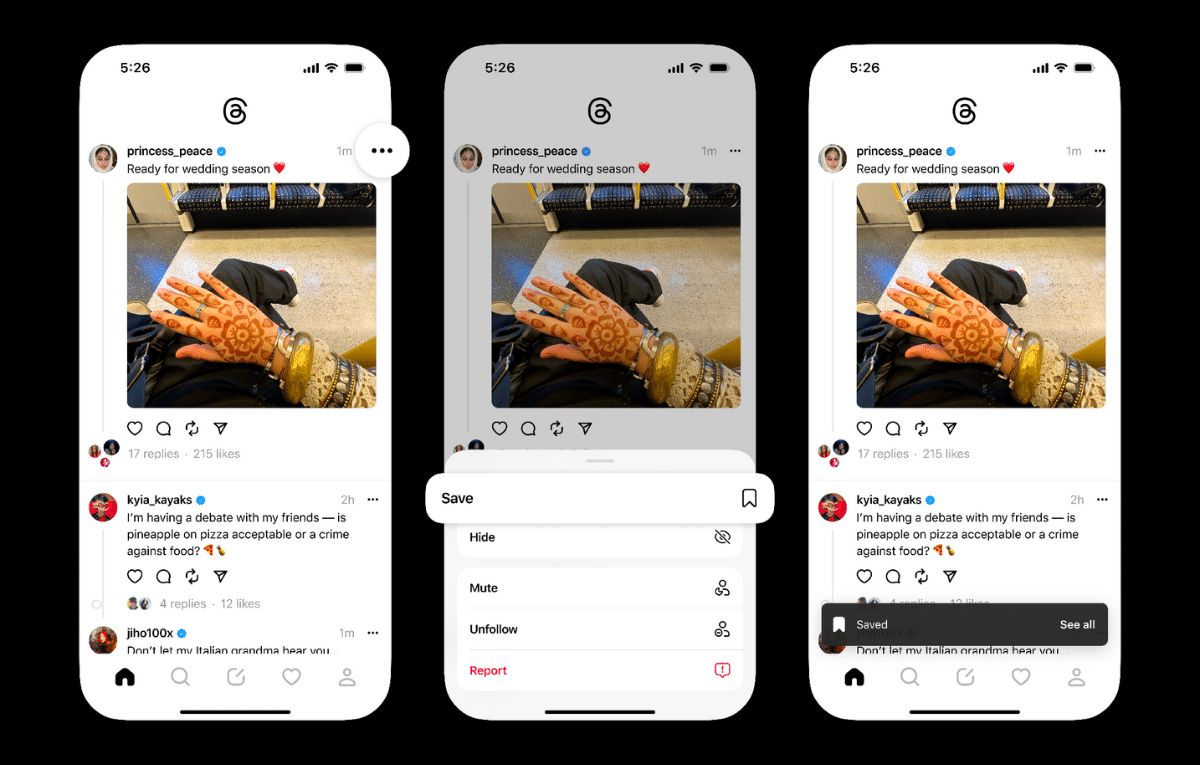 وتتمتع إنستاجرام بإمكانية وضع الإشارات المرجعية منذ عام 2016، لذا فإنه من المنطقي أن يتبنى ثردز هذه الميزة أيضًا.