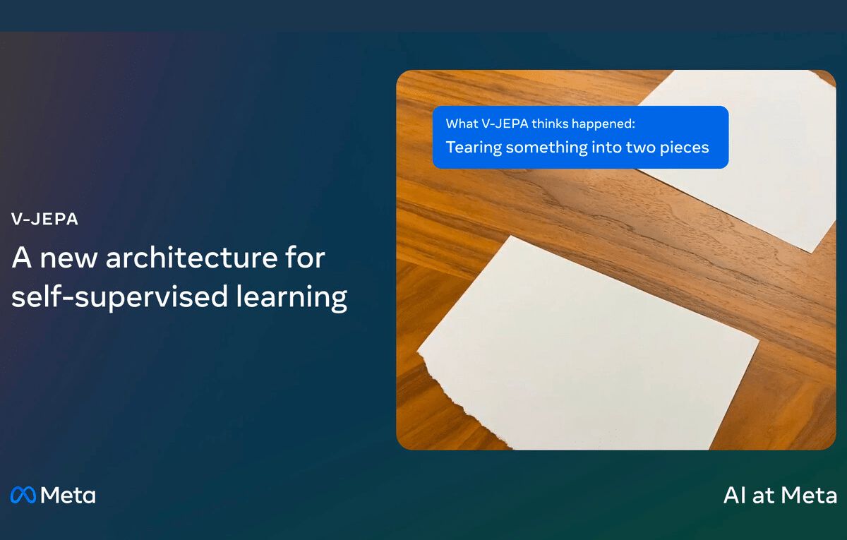 أصدرت ميتا نموذجًا جديدًا للذكاء الاصطناعي يسمى V-JEPA، ويعمل هذا النموذج على تحسين فهم الآلات للعالم من خلال تحليل التفاعلات بين الأشياء في مقاطع الفيديو.