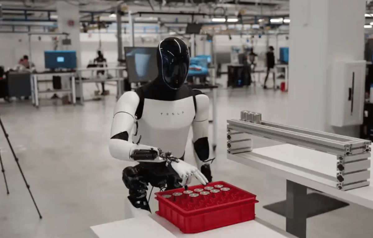 نشرت تسلا مقطع فيديو جديد لروبوتها أوبتيموس الذي يشبه الإنسان، ويظهر المقطع قدرة الروبوت على فرز خلايا البطارية، والمشي، وأداء مهام المصنع الأخرى.