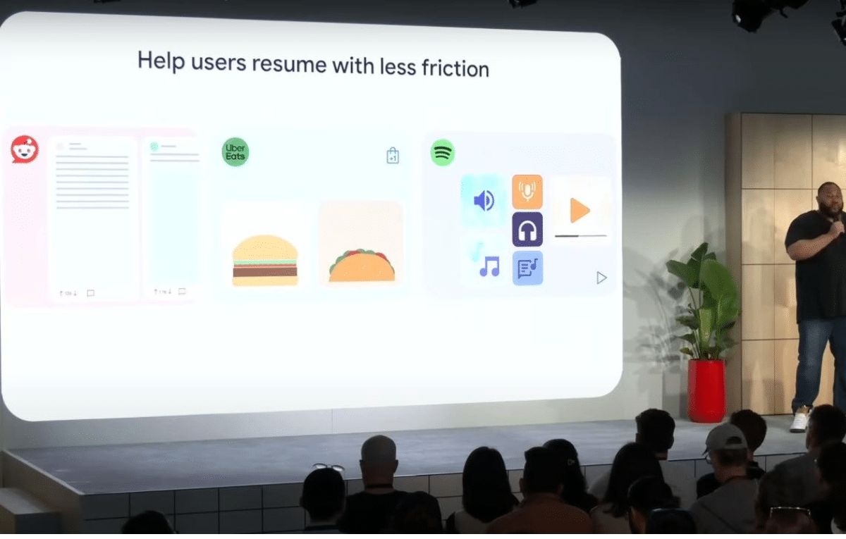 وكما أوضحت جوجل خلال جلسة المؤتمر، فإن الميزة الجديدة الموجود عبر الجهاز تنظم الأمور الأكثر صلة بالمستخدمين، وتدعوهم للعودة إلى تطبيقاتهم.