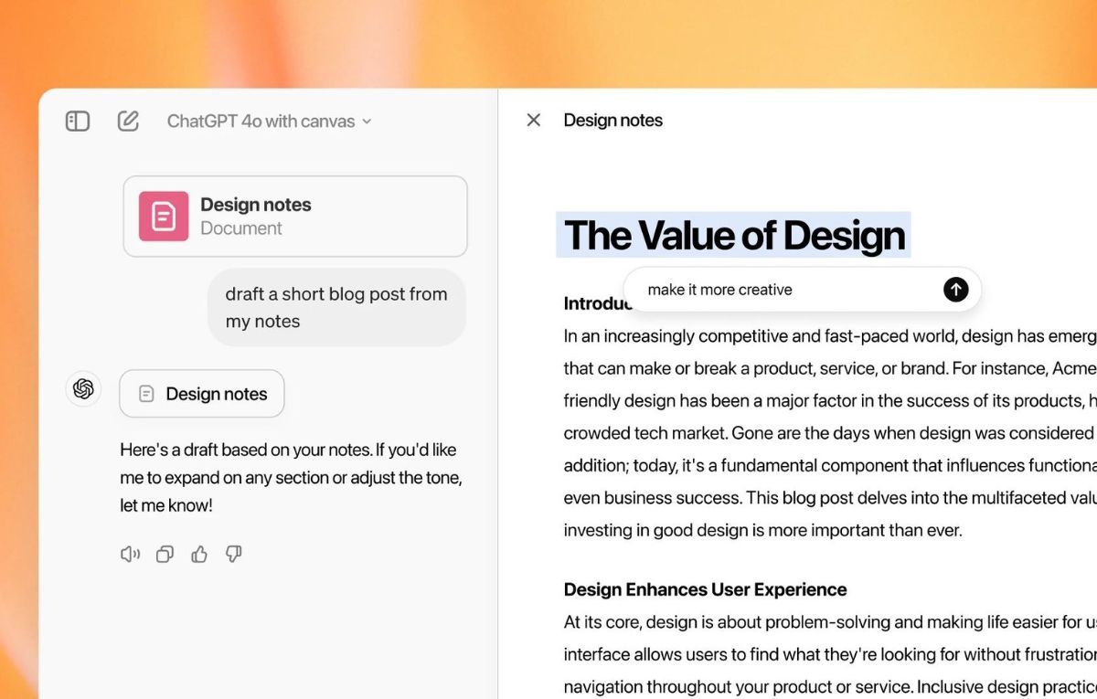 وتُعد ميزة “Canvas” أول تحديث كبير لواجهة المستخدم في ChatGPT منذ إطلاقه قبل نحو عامين، وفقًا لـ OpenAI.