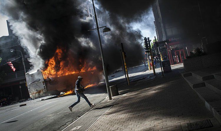 بدت جوهانسبرغ المركز الاقتصادي لدولة جنوب إفريقيا كساحة حرب، مساء أمس الأحد، بعد انتشار أعمال عنف وفوضى عارمة في شوارعها على خلفية استمرار الاحتجاجات عقب سجن الرئيس السابق للبلاد جاكوب زوما. وتعرض عدد من المتاجر في جوهانسبرغ للنهب، وأغلقت العديد من الطرق، وخرج محتجون حاملين العصي في شوارع المدينة، وأعلنت هيئة المخابرات الوطنية اعتقال 62 شخصا.