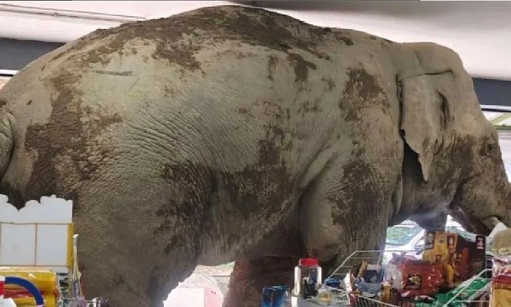 اقتحم فيل بري ضخم يزن نحو 4 أطنان أحد المتاجر الكبرى في مدينة ناخون راتشاسيما شمال شرقي تايلاند، لتناول الطعام الموجود على الرفوف.