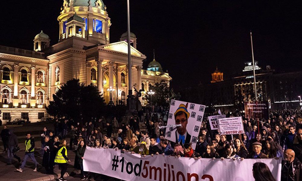 وأفاد داتشيتش باعتقال 37 شخصا، مشيرا إلى أن قوات الأمن استخدمت الغاز المسيل للدموع خلال الاشتباكات في بلغراد، وتمكنت من دفع المتظاهرين باتجاه ساحة سلافيا.