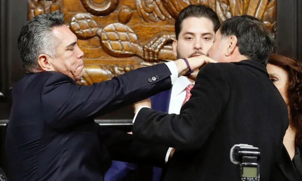 وأمسك رئيس الحزب الثوري المؤسسي المعارض أليخاندرو مورينو، رئيس مجلس الشيوخ جيراردو فرنانديز نورونيا، وهو من حزب مورينا الحاكم، بعد أن انتهى المشرعون من غناء النشيد الوطني إيذانا بنهاية الجلسة.