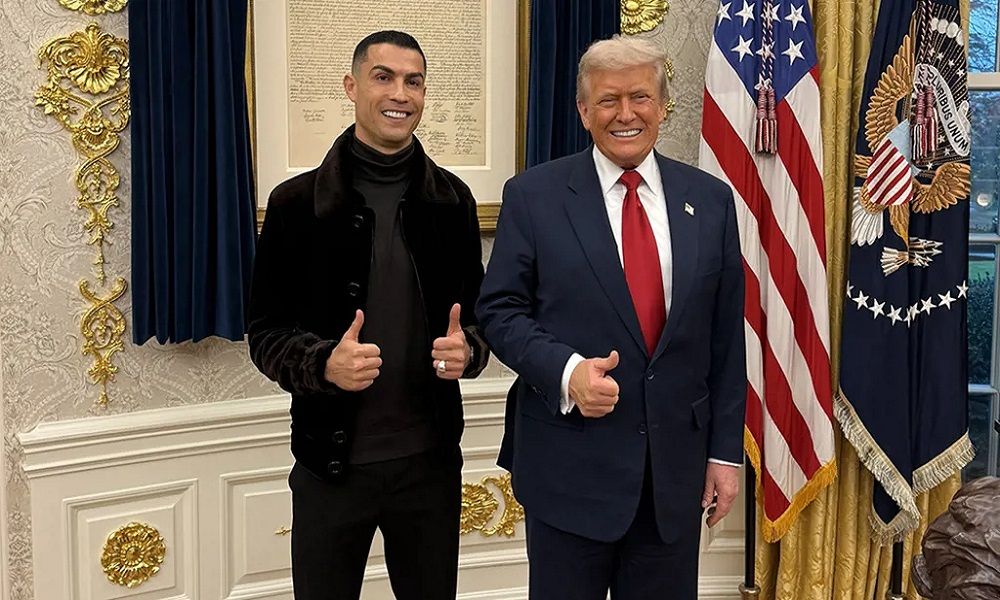 وكان حساب البيت الأبيض الرسمي على مواقع التواصل الاجتماعي قد نشر شريط فيديو يجمع الرئيس الأميركي دونالد ترامب والنجم البرتغالي كريستيانو رونالدو وخطيبته جورجينا رودريغيز.