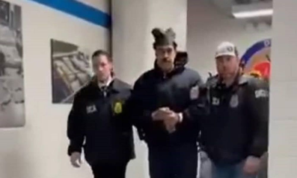 توجه الرئيس الفنزويلي المعتقل نيكولاس مادورو أثناء اقتياده إلى مكتب إدارة مكافحة المخدرات في نيويورك، للمصوّرين هناك بالقول: “ليلة سعيدة، سنة سعيدة”.